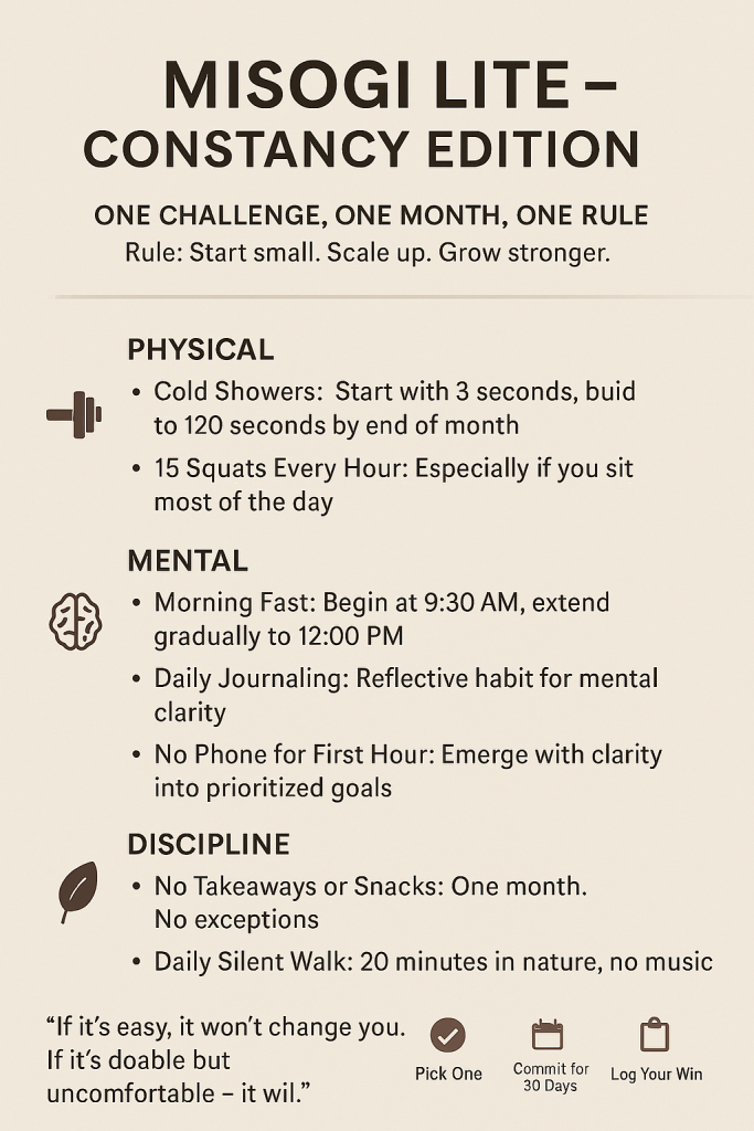One Challenge, One Month, One RuleRule: Start small. Scale up. Grow stronger. πΉ Physical πΉ Mental πΉ Discipline βIf itβs […]